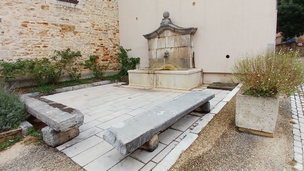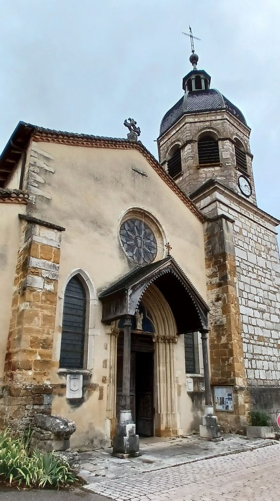 Nous sommes aussi devant l’entrée du château , le portique est fermé . Cet édifice a été reconstruit sur les ruines de l’ancien château féodal et a appartenu aux seigneurs de Coligny, de Bourgogne ,comtes de Savoie et a connu de nombreuses destructions ; en 1909 il a été racheté et reconstruit par l’architecte départemental de l’Ain : Tony Ferret . Laissé à l’abandon il reprend vie grâce à la passion de Michel Piroux , industriel métallurgique