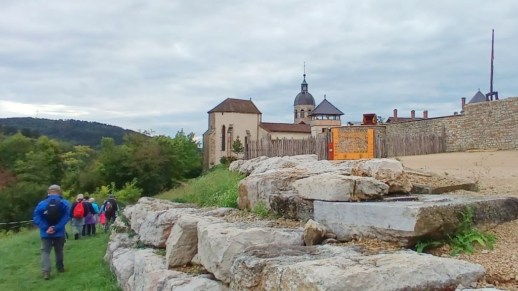 renommé de Treffort . Il a engagé des travaux monumentaux depuis 5 ans et cette forteresse est devenue un lieu culturel ( musée, restaurant, fêtes médiévales , visites pédagogiques etc ) ce site n’est pas classé monument historique ce qui facilite la restauration . Le village bénéficie de cet attrait touristique et redécouvre son riche passé patrimonial par de multiples plaques signalétiques . Nous suivons les remparts fraichement restaurés et nous prenons la direction de Cuisiat par le sentier ethno botanique .