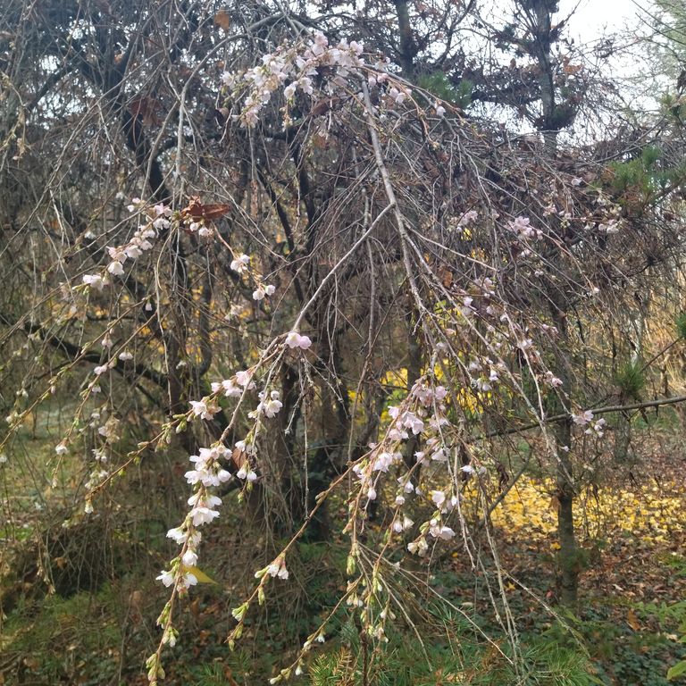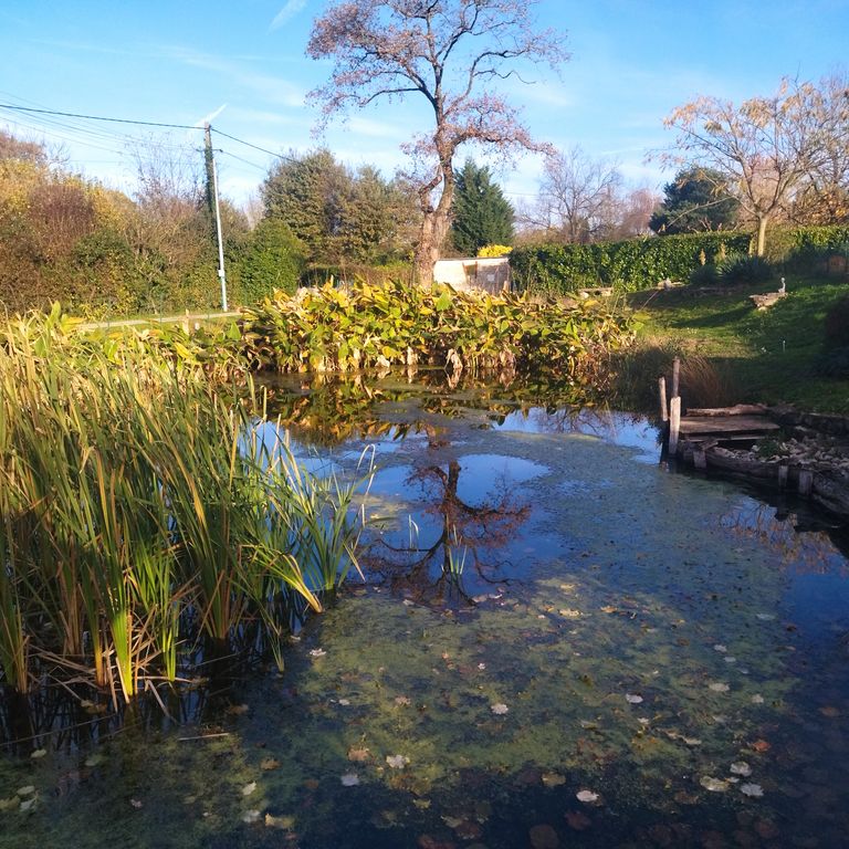 Le ginko biloba s’est délesté de ses écus d’or , les températures clémentes font refleurir certains arbrisseaux , les bourgeons pointent leurs extrémités duveteuses : ça sent le printemps ! Nous nous faufilons dans cet enchevêtrement végétal pour tomber par hasard sur une mare en plein curage qui dégage une forte odeur de vase . Nous empruntons des allées herbeuses fraîchement tondues pour sortir de cet univers chamoiré et nous diriger vers l’ ancienne école de Vial .