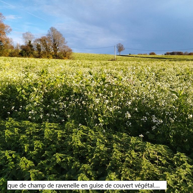 Nous dominons la zone de captage des eaux potables de Polliat nichée dans les marais et bien protégée . Depuis notre dernier passage le hameau s’est bien agrandi ; le Gaec Forey ( élevage laitier) subsiste encore au milieu des fermes restaurées et des nouvelles constructions .Les prairies et les couverts végétaux sont en pleine croissance ( ravenelles)à fleurs blanches imitant un saupoudrage de neige .