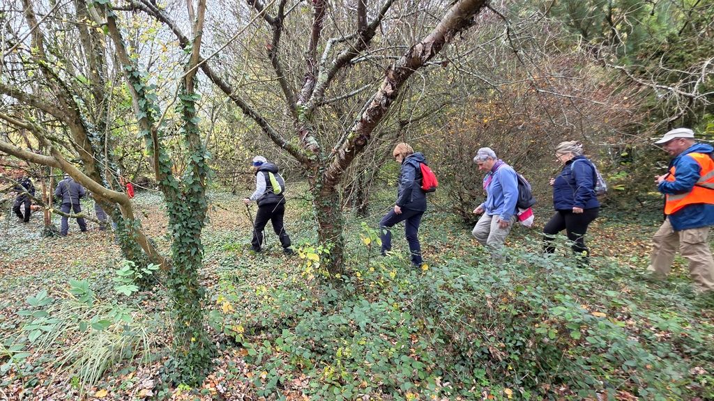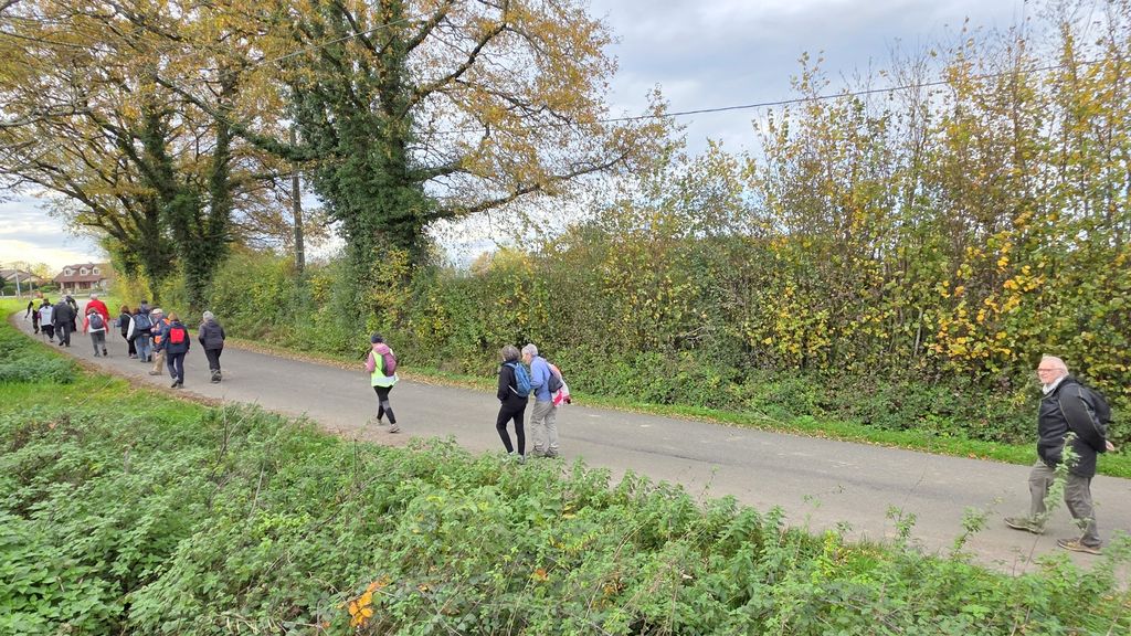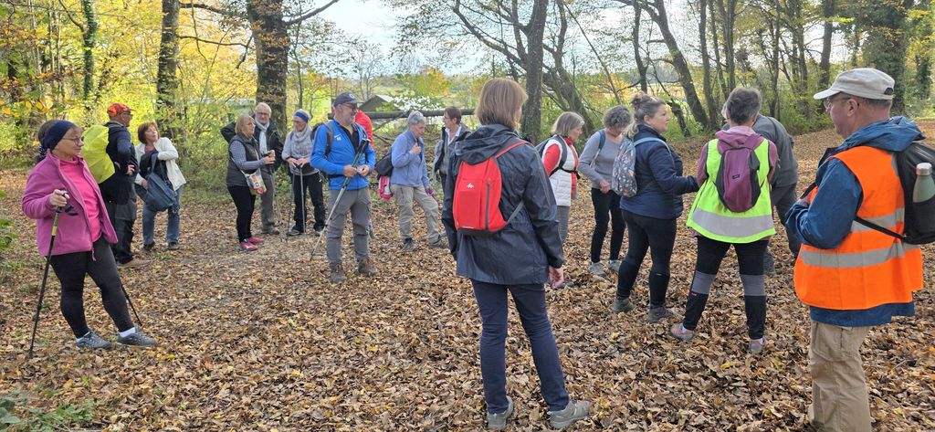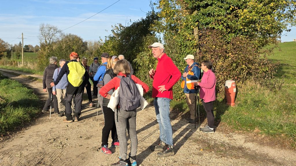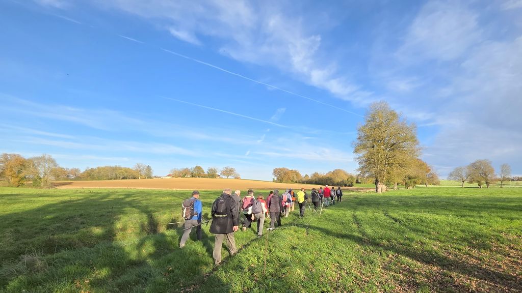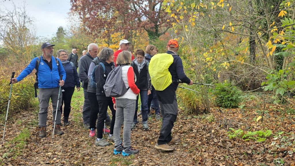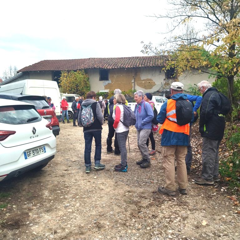 Température idéale , pas de vent , grande douceur , ciel bleu , c’est l’été de la St Martin . 19 randonneurs se garent en manoeuvrant plus ou moins facilement dans l’allée de la ferme des pépinières Bessard à Vial un hameau de Polliat .