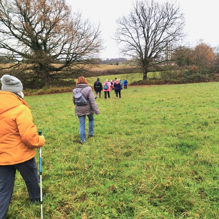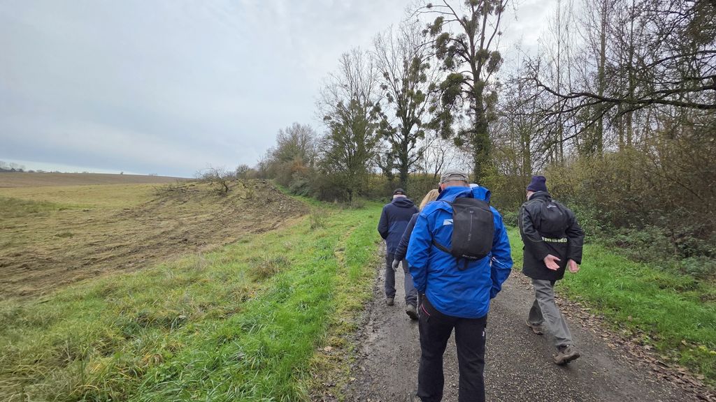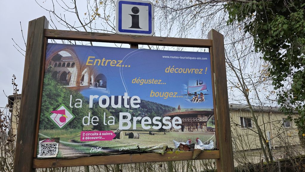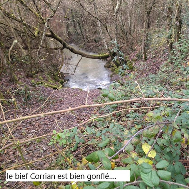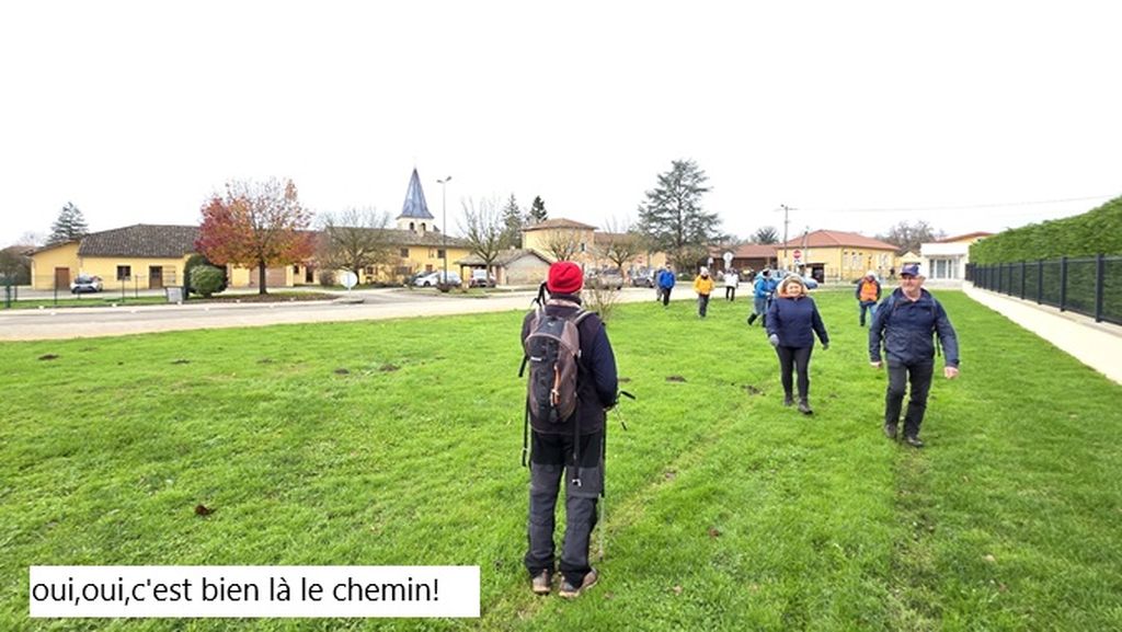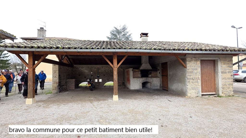 Ce bourg est caché dans un vallon et passe inaperçu auprès des automobilistes empruntant la nationale . De traboules en traboules nous déambulons parmi des zones pavillonnaires pour déboucher devant la mairie , l’école ,centre de loisirs , bibliothèque , four , tennis , gymnase : de quoi faire des envieux ! Sans transition nous prenons des chemins herbeux détrempés le long d’un bief ; heureusement nous pouvons passer sur le pont submersible .