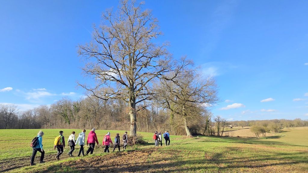 14 randonneurs se retrouvent sur le parking de la salle des fêtes de St Martin le Châtel ( 796 hab ) pour entamer le programme des randos à la demie journée 2026 . Nous bénéficions d’une météo printanière avec un vent du Sud bien présent .