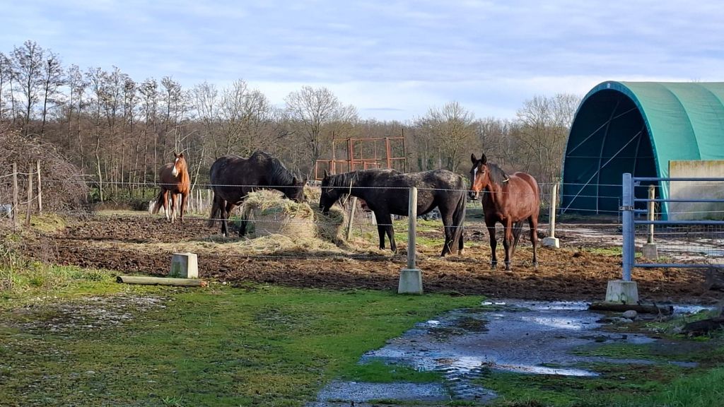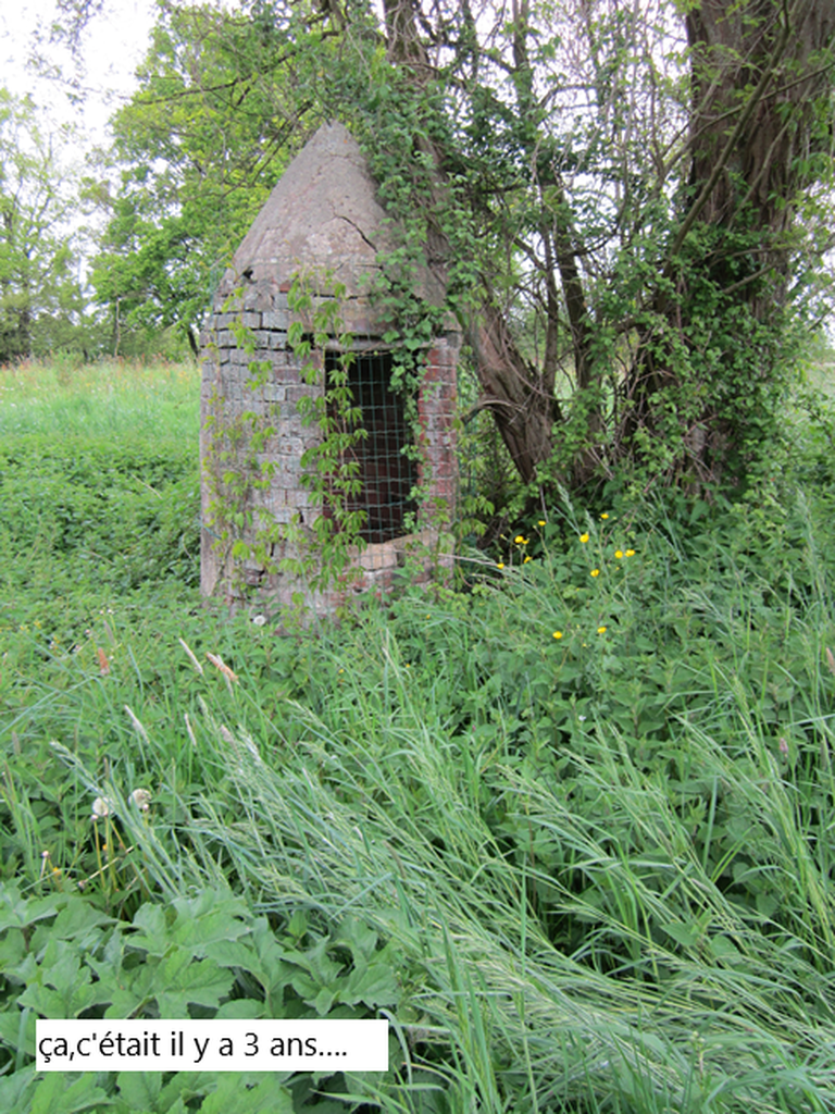 Après être passés à Farquet,Faussy ,nous arrivons à Maillard où Jacky avait sa ferme il n’y a pas si longtemps et que l’on avait visité.Pendant qu’il rend visite aux nouveaux propriétaires,nous pouvons admirer derrière les clôtures impeccablement alignées la cinquantaine de poulinières qui sont dans un écran de verdure. Sur notre route qui mène aux Pins un petit étang discret entouré de roseaux et direction tout à droite pour un parcours inédit.A l’horizon une méga-ferme , celle du Blotonne,des tas de fumier en bordure des champs attendent l’épandage : amas bruns et compacts, d’où s’élève une légère odeur organique. La matière encore tiède fume légèrement par endroits, signe de sa lente fermentation.La route est marquée de traces de pneus témoins du travail récent.