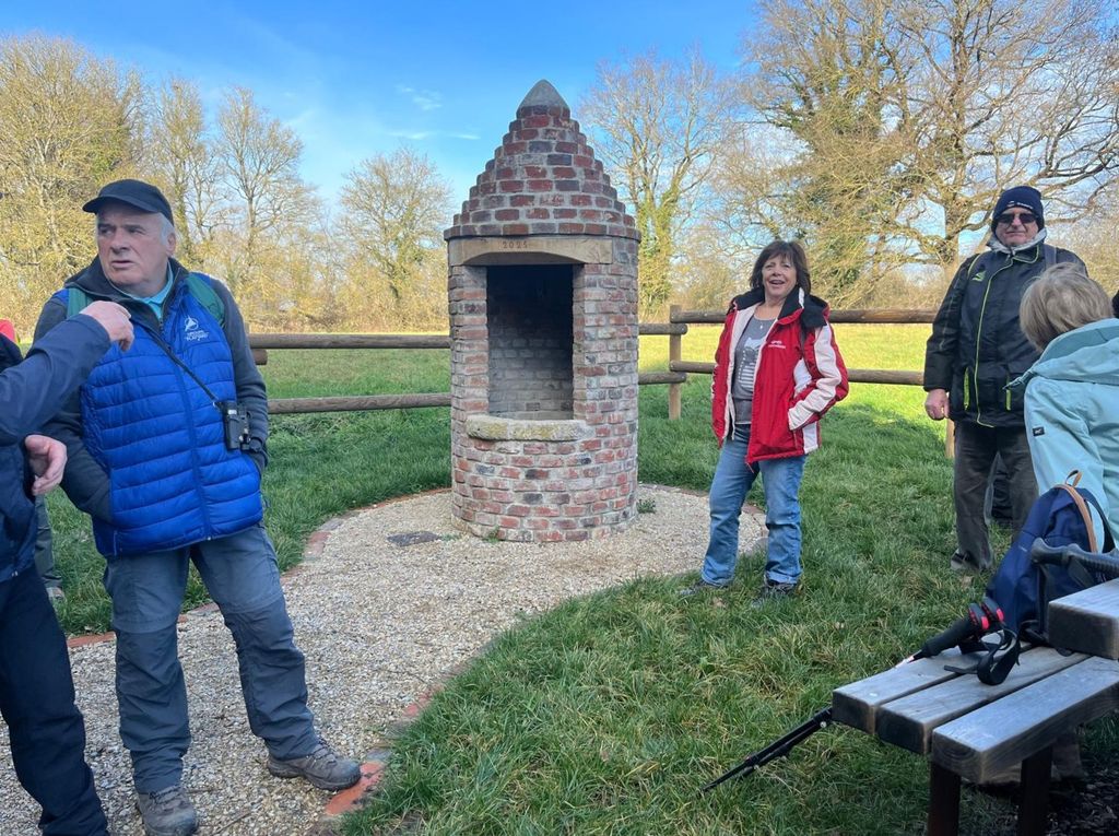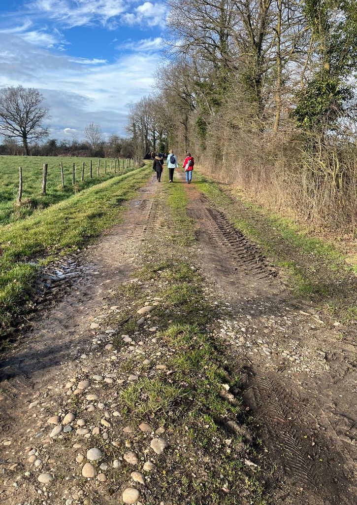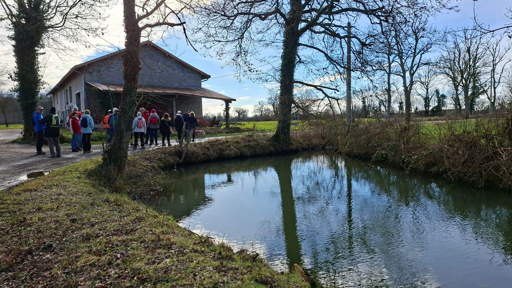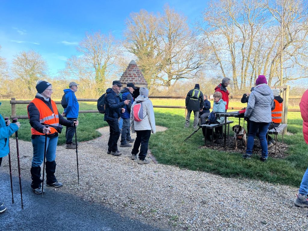 Finalement notre sortie se déroule par un temps agréable,un ciel bleu pâle et une douceur inattendue.Un petit vent du sud rafraichit le moteur mais pas suffisamment et déjà certaines éprouvent le besoin de poser une épaisseur .Il y a de cela 3 ans ,nous avions remarqué, dépités, en bord de chemin un vieux puits envahi par des ronces.Et bien la municipalité l’a retapé avec goût et aménagé le lieu avec bancs et table.Bravo à eux! C’est l’occasion rêvée pour boire un coup et les petits groupes du départ se défont pour en reformer d’autres et repartir du Puits d’Argent avec des éclats de rire….