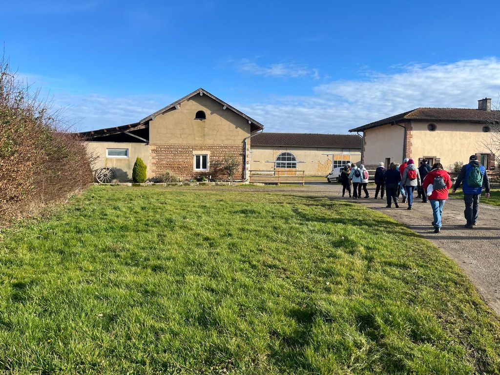 Dans le mode « comment s’adapter avec la météo »la sortie prévue dans les bois de la Tefy ,avec des forestiers qui ont mis à mal les sentiers,a été déportée à Condeissiat.18 randonneurs sont présents au RDV pour former un groupe animé et c’est d’un bon pas que nous traversons le village par une petite route confidentielle.Il faut dire qu’aujourd’hui avec Jacky.Gilles et Roger nous ne serons jamais perdus!Même si de nombreuses exploitations agricoles ont disparu,le première ferme se présente.Mais qui est le proprio?Pour ceux qui ne sont pas du « pays »dans un rayon d’une dizaine de kms les noms de famille »Simonet,Moisson,Rapy,Ricol,Belouzard »font partie du patrimoine…