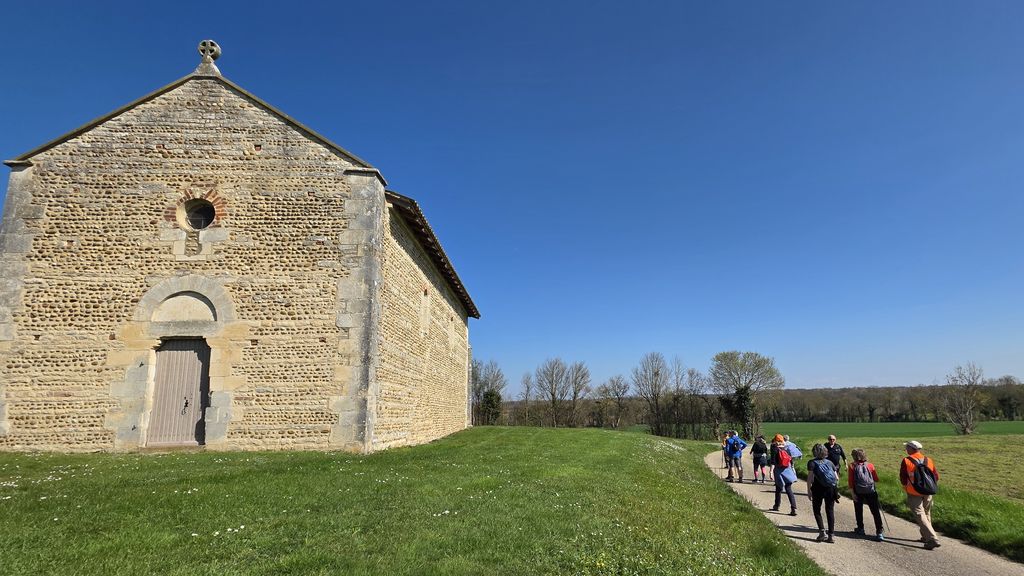 Le temps de croiser un traileur torse nu et c’est le retour sur des sentiers meubles avec une marche ralentie par le passage des engins qui déversent des tonnes d’effluents odorants.La rivière du Moignans franchie, l’église avec ses 5 clochers et ses 4 sans cloche va guider la fin de la sortie.Il faut dire que le jour de la reco avec un épais brouillard givrant,j’avais eu du mal à m’orienter et j’étais juste pressé de rentrer au bercail…J’avais laissé la partie tourisme pour le jour J.