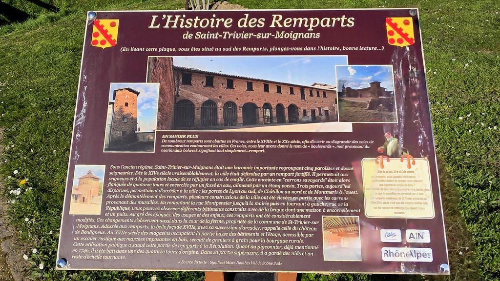 Et on y est!Situé à l’entrée sud du village et propriété de la commune depuis 2005, cet ensemble architectural de plusieurs bâtiments d’époques diverses des XVII au XIXème siècles est édifié en carrons savoyards (briques), sur les fortifications médiévales de Saint-Trivier sur Moignans datéess XIV et XVème siècles.En été,souvent des spectacles sons et lumières se déroulent sur l’esplanade.Une partie des fossés a été conservée et un sentier aménagé pour contourner cet ilot.Tour et pigeonnier sont bien conservés avec une ferme en activité qui cohabite avec ces bâtiments chargés d’histoire!Une traboule et nous voilà en face de l’emblème de St Trivier ; en face de nous en parfaite conservation une maison à encorbellement et son puits.L’église est toute proche,alors allons-y…Elle est bien sûr fermée et un petit moment de flottement s’installe pour retrouver le parking.Les 17 heures sonnent mais c’est le clocheton de la mairie qui retentit.Ouf!J’ai juste oublié de vous dire que pour ceux qui suivent The Voice,il y a une quinzaine d’année un enfant du pays ( Louis Delort a été un finaliste de ce concours )..Et les habitants sont des Utingeois(cf article ci-dessous) .