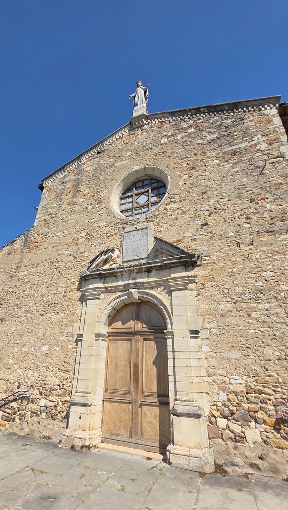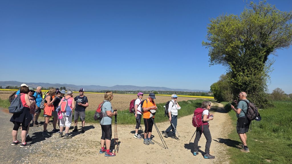 L’Appéum,la rivière locale franchie,fini la platitude avec une petite grimpette qui nous fait parvenir à Lurcy et son resto fermé.Petit détour vers son château et le paysage change de physionomie avec en fond d’écran les Monts du Beaujolais . Nous arpentons le plateau au milieu des champs de céréales, des semis de maïs récents , des colzas en pleine floraison sous une chaleur maintenant bien présente!Et toujours de nombreux hameaux bien peuplés avec des demeures huppées dont la majorité des habitants vont à Villefranche(12kms)Belleville(6 kms) pour le travail.Tout près de cette petite route il y a bien le joli château de Francheleins mais depuis 2019 il est devenu propriété privée alors allons directement pique-niquer à la chapelle d’Amareins,ne changeons pas nos habitudes!