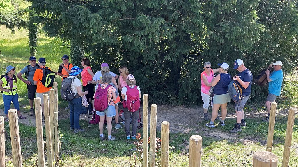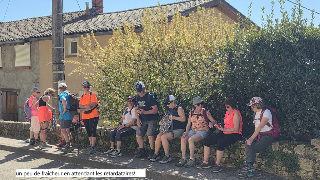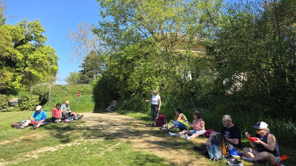 Le gazon est tondu,un peu d’ombre pour certains,d’autres au soleil,de quoi faire une bonne sieste ensuite!Mais Roger n’est pas au mieux,la faute à un faux pas qui lui a causé des douleurs à son genou récalcitrant depuis quelques semaines.La genouillère,un doliprane,les bâtons, l’absence de Marie Martine pour lui faire une imposition des mains.Faut-il envisager l’abandon?Prier le bon Dieu dans la chapelle?Et pourquoi pas demander de l’aide à une dame qui vient de fleurir une tombe?Elle aussi randonneuse,elle est prête à redescendre l’ami Roger aux voitures!